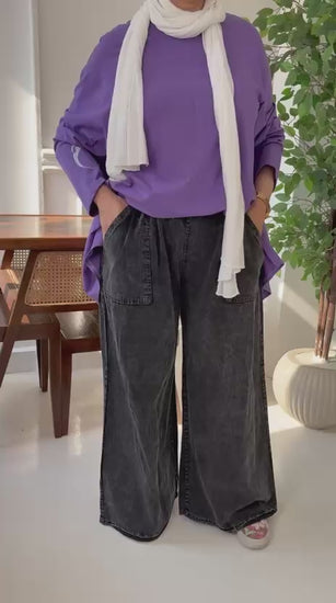 light weight denim pants fit for a modest elegant look and your comfort in one piece comes in two colors.
